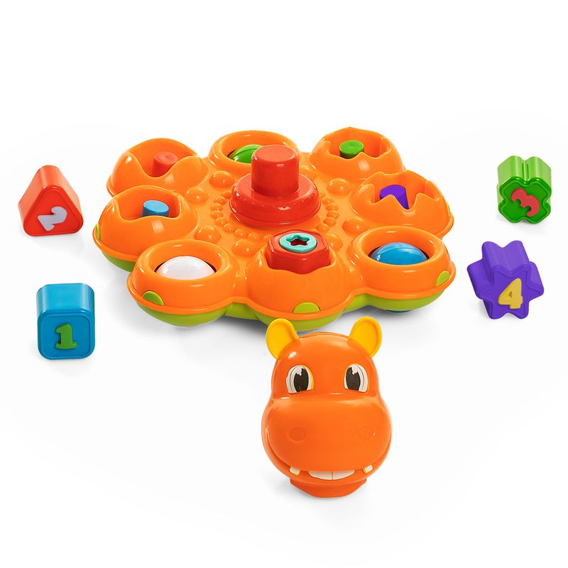O Pula Bloco vem com quadro blocos numerados 1 – 2 – 3 – 4 que encaixam na base do brinquedo com formatos diferentes. A surpresa e a diversão tomam conta da brincadeira quando a cabeça do animalzinho é pressionada.