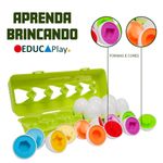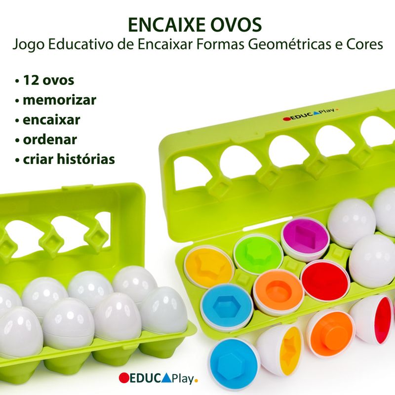 Brinquedo Educativo Ovos De Encaixar Infantil Geométricas Brinquedo versátil que incentiva a imaginação da criança. Os ovos de encaixar são ideais para brincar e aprender! Com eles, seu filho(a) aprenderá sobre formas, cores, ação e reação, estimulando a coordenação motora. Também podem ser utilizados para fazer barulho, tornando a brincadeira mais animada. Desafie seu bebê a encontrar as metades correspondentes dos ovos para desenvolver habilidades cognitivas. Além disso, podem ser usados em jogos de memória, como carimbos ou brinquedos para a hora do banho, proporcionando diversas possibilidades de entretenimento. As peças têm acabamento liso e são do tamanho adequado para pequenas mãos exploradoras. Características: - Tamanho: 6,3 cm X 4,6 cm - Material: plástico não tóxico Conteúdo da Embalagem: - 1 Caixa com 12 Ovos