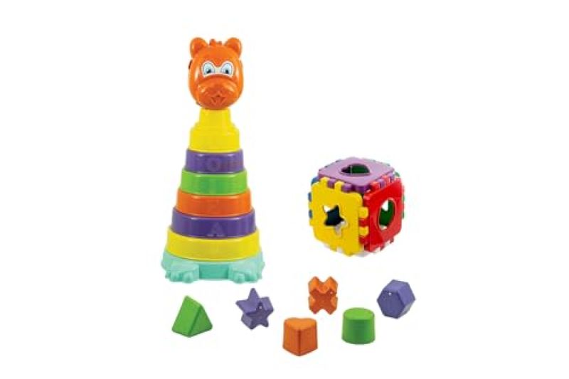 Conheca nosso ursinho com 06 aneis coloridos para empilhar e um cubo cheio de surpresas, com 6 formas geometricas diferentes! E a combinacao perfeita de aprendizado e brincadeira. Vamos tornar cada momento uma aventura divertida!