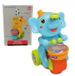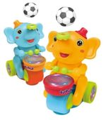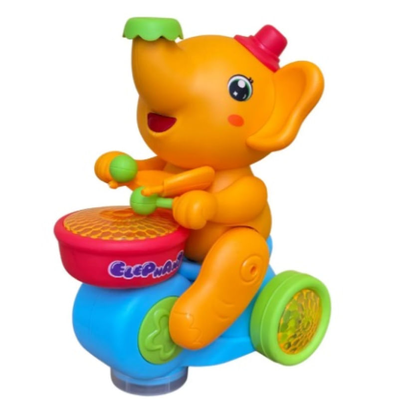 Elefante soprador, assopra a bolinha enquanto se movimenta, com sensor ele bate e volta, além de tocar música e bater o tambor, tem um efeito lindo de luzes, acompanha 2 bolinhas!