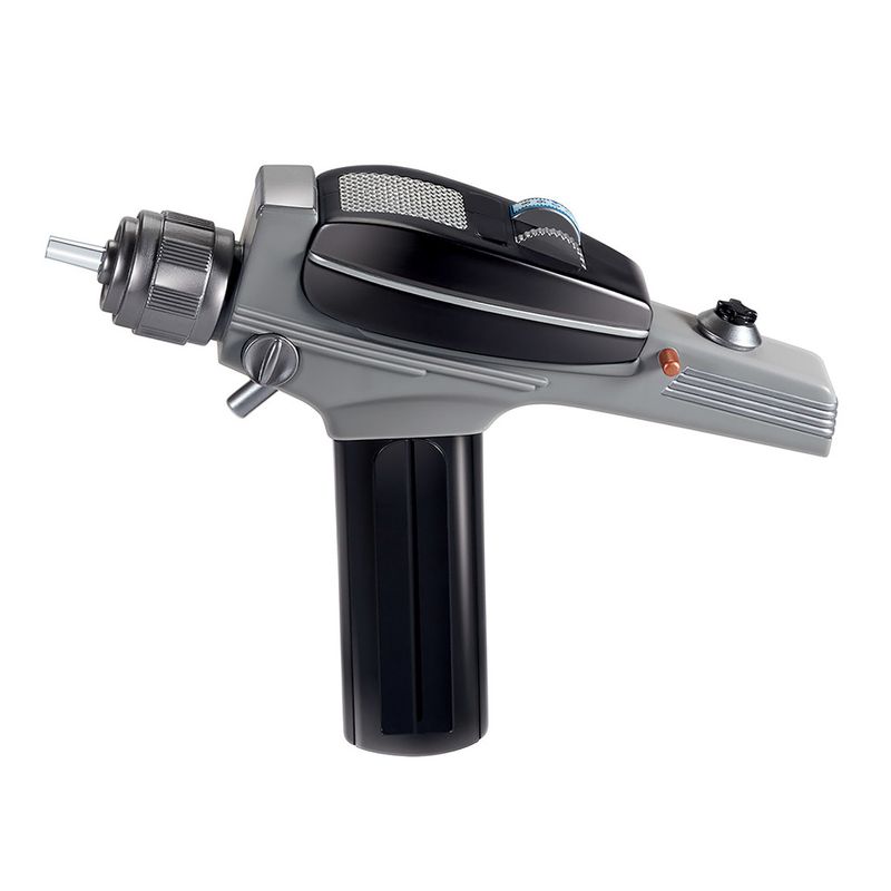 Em Star Trek: The Original Series, os phasers eram a arma de energia direcionada mais comum e padrão no arsenal da Frota Estelar. O futuro está de volta! O atemporal e icônico Star Trek: The Original Series Phaser Réplica definitivamente deixará seu fandom em choque! O Phaser apresenta luzes e vários sons da Série Original, exatamente como você se lembra! O Phaser está completo com modos de ativação 3x: cheio, atordoado e sobrecarregado! Esta réplica da arma lateral de projeção de energia padrão da Frota Estelar é exibida em uma embalagem nostálgica que lembra o visual dos anos 90. Escala de 1:1 em tamanho real. 2 BATERIAS AA
