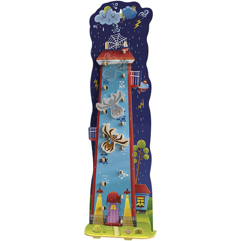 Será que a chuva forte realmente derrubou a Dona Aranha? O Desce, desce – Dona Aranha é um divertido brinquedo de movimento cadenciado, no qual a Dona Aranha é colocada no topo do prédio e vai descendo em movimentos de zigue-zague. Esse brinquedo pode ser utilizado tanto em cima de uma superfície dura e nivelada, quanto na parede. Auxilia no desenvolvimento da coordenação motora, da percepção visual e da atenção.