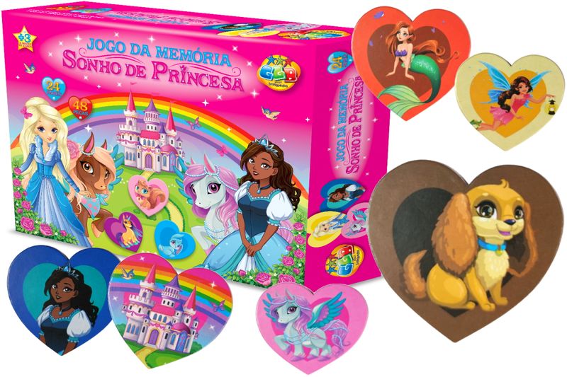 Jogos da Memoria Princesas Brinquedo Educativo Infantil 48 Peças