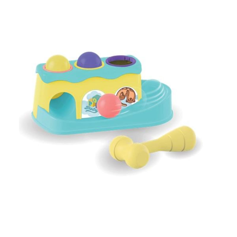 Possui martelinho e base, além de 3 bolinhas coloridas que os bebês adoram.