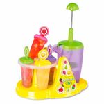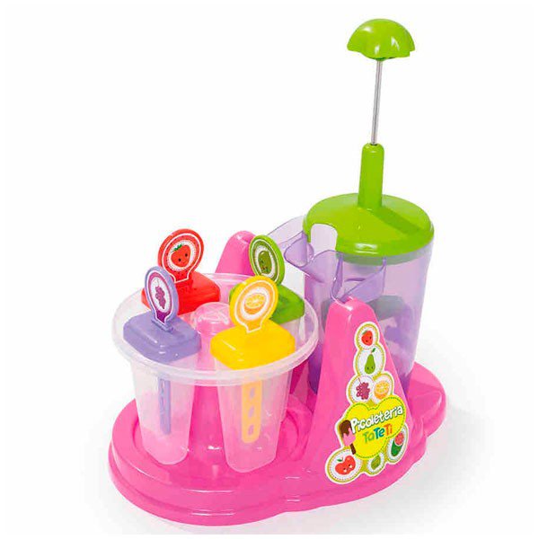 A Picoleteria Calesita vem com 4 palitinhos coloridos laváveis, forma e copo misturador. É só misturar frutas com iogurte ou suco! Fazer picolé virou brincadeira!