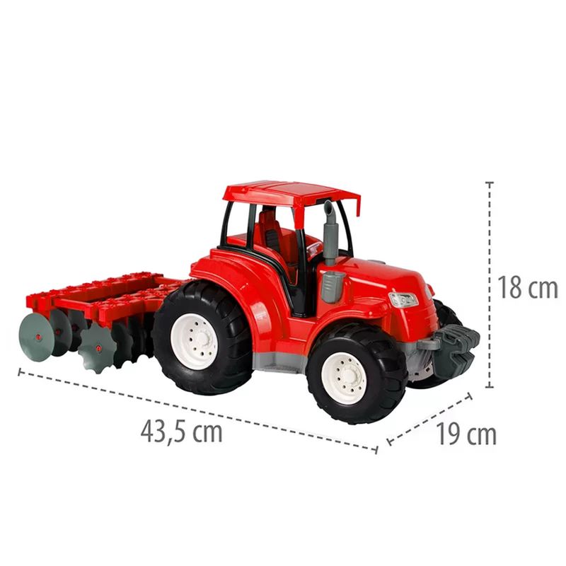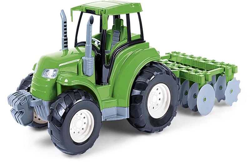 O Trator Arado Poliplac é rico em detalhes, imitando o mundo real, o arado articulado tem altura regulável, os contra pesos são removíveis e os pneus são emborrachados e macios.
