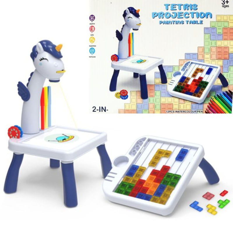 1 Mesinha De Pintura Com Projeção Tetris Unicórnio