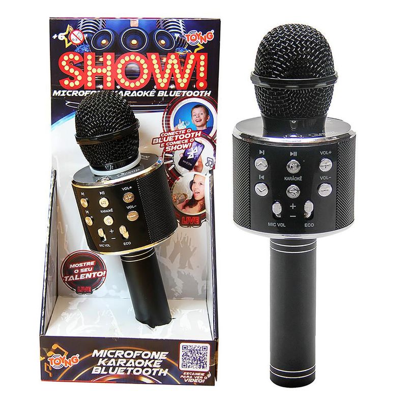 Imagine fazer um show na sua sala, no quarto ou até em uma festa com os amigos. Com o Microfone Karaokê Bluetooth Show, isso é possível, conecte-o via Bluetooth ao seu celular ou tablet e comece a cantar suas músicas favoritas em segundos. Conectividade Bluetooth: Funciona com Android e iOS, permitindo que você sincronize seu celular com facilidade. Efeitos de voz: Alterne entre vozes engraçadas ou mais profissionais com apenas um clique no botão de karaokê. Ajuste de eco: Dê aquele toque especial à sua voz com o efeito de eco ajustável. Entradas USB e SD: Além de Bluetooth, você pode usar um pendrive ou cartão de memória para tocar suas músicas favoritas. Diversão para todas as idades: Seja para crianças ou adultos, todos podem se divertir com esse karaokê portátil. O design é super intuitivo! Basta conectar ao seu celular via Bluetooth, escolher sua música e começar a cantar. Simples assim! O Microfone Show é perfeito para qualquer ocasião: festas, reuniões familiares ou até para praticar suas músicas favoritas no dia a dia. Potência de saída: 3WX2 Faixa de frequência: 100HZ Tamanho: 22,5 x 7,5cm Conteúdo: 1 Microfone com conexão Bluetooth Material: componentes eletrônicos INMETRO: 002968/2022 Homologado Anatel - 04034-18-11471 Alimentação: Bateria recarregável via USB (cabo incluso) Indicação: + 6 anos de idade