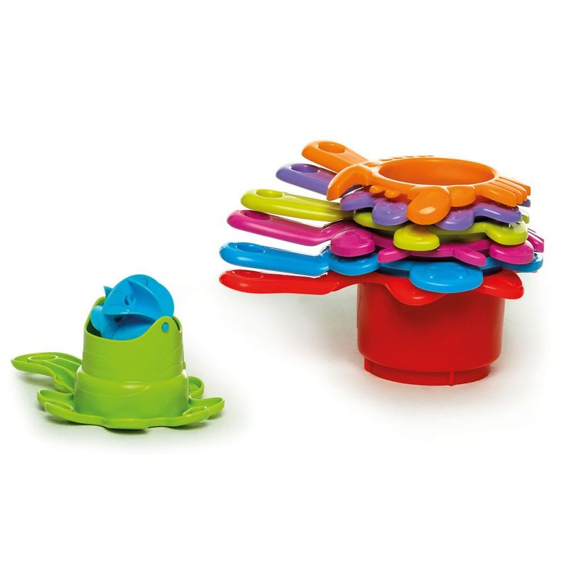 Brincar com água é sempre mais divertido! São 7 pecinhas com desenhos do fundo do mar par empilhar e desenvolver a coordenação motora. Para a brincadeira ficar ainda mais divertida jogue água por cima do brinquedo e a rodinha no topo começa a girar.