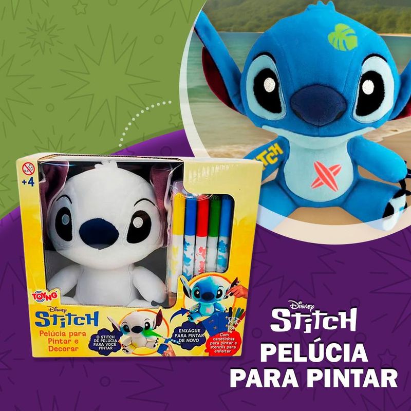 Já imaginou poder pintar o Stitch do jeitinho que quiser e depois fazer tudo de novo? Com o Brinquedo Pelúcia Stitch Para Pintar e Decorar da Toyng, a criatividade ganha vida de um jeito único, divertido e super interativo. Esse kit incrível da Disney é perfeito para crianças a partir de 4 anos (e adultos também vão se apaixonar). Você recebe uma pelúcia fofa do Stitch pronta para virar uma verdadeira obra de arte nas suas mãos. Use as 5 canetinhas coloridas e 4 moldes exclusivos (stencils) para personalizar o Stitch do seu jeitinho. E o melhor: pintou, enjoou? Lava e começa tudo de novo. Sim, basta enxaguar (usando apenas as canetinhas do kit) e a mágica acontece: a pelúcia volta limpa para novas criações. 2 modos de pintar, 2 jeitos de se divertir! Modo Airspray: Encaixe a canetinha no aerógrafo (que vem no kit) e aperte a base para criar um efeito spray super moderno. Modo Pintura Direta: Pinte com a canetinha direto na pelúcia para um resultado mais uniforme e detalhado. O que vem no kit? 1 Pelúcia Stitch 5 Canetinhas laváveis 1 Aerógrafo (airbrush) 4 Moldes Stencil 2 Luvas de proteção Composição: Poliéster, polipropileno e papel A tinta realmente sai? Sim! Desde que você use somente as canetinhas inclusas no kit, a tinta sai com enxágue simples. É só lavar com água e pronto: Stitch limpinho e pronto pra ser pintado novamente! Mancha a mão ou a roupa? Acompanha luvinhas de proteção, mas as canetinhas são laváveis - então mesmo que suje um pouco, sai com facilidade. É um bom presente? Com certeza! Esse é o tipo de brinquedo criativo que estimula a imaginação, a coordenação motora e ainda permite que a criança brinque muitas vezes. Uma ideia incrível de presente educativo e divertido! Que tal dar asas à criatividade com o Stitch mais fofo e artístico do universo Disney? Garanta agora o seu Brinquedo Pelúcia Stitch Para Pintar - Toyng e transforme a diversão em arte! INMETRO: 004357/2024 Indicação: + 4 anos de idade