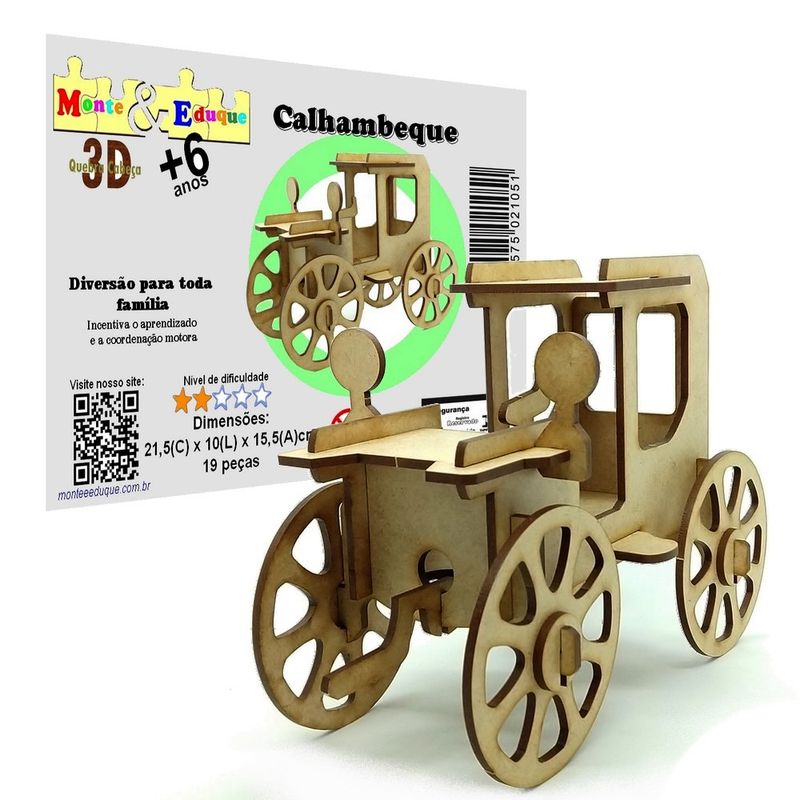 Confeccionado em MDF, o quebra cabeça 3D da Monte & Eduque é um brinquedo educativo que estimula a criatividade.