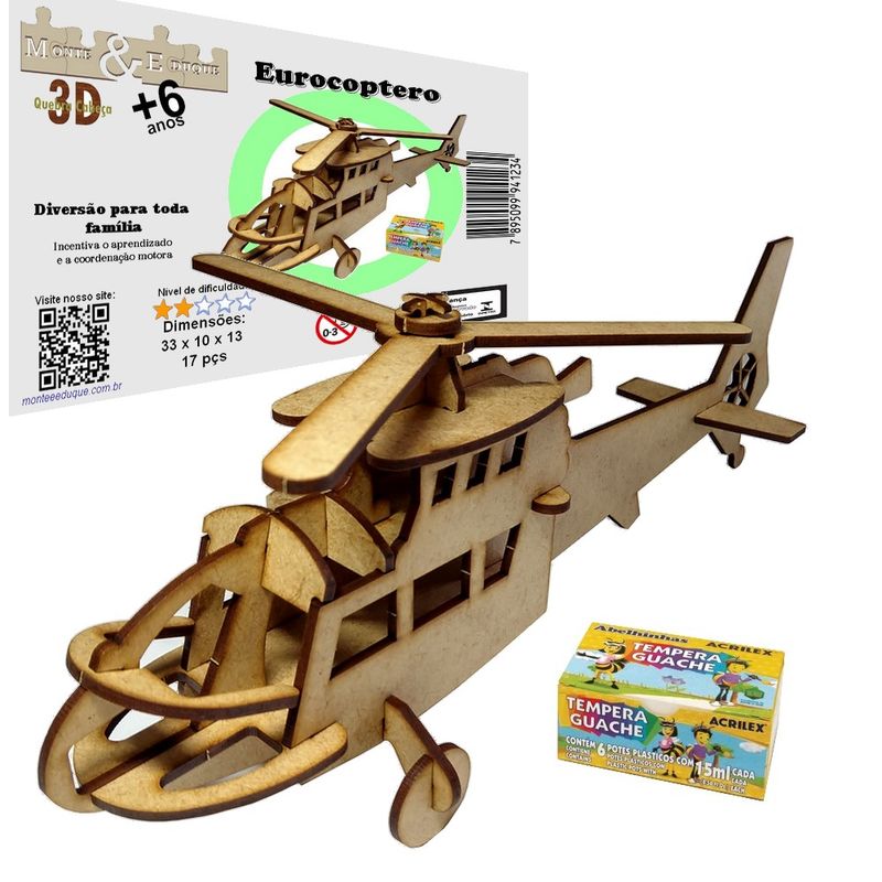 Confeccionado em MDF, o quebra cabeça 3D da Monte & Eduque é um brinquedo educativo que estimula a criatividade.