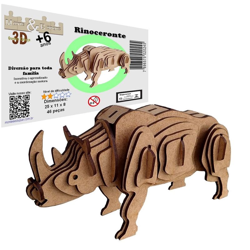 Confeccionado em MDF, o quebra cabeça 3D da Monte & Eduque é um brinquedo educativo que estimula a criatividade.