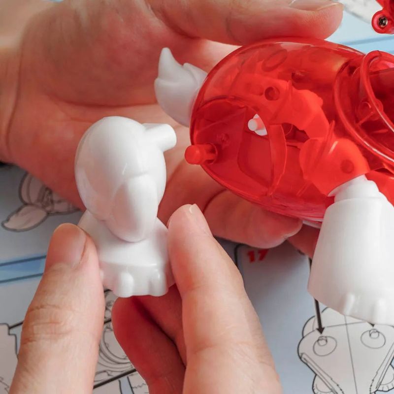 Crie seu próprio Robô da Patrulha Canina! Com muita diversão trazemos a patrulha canina! Brinque com o Marshall um dos principais personagens do desenho. Junte as peças e cole os adesivos para construir o robô Marshall.O cachorro vem desmontado em cerca de 20 peças plásticas e com eletrônica, sendo parte da importante da brincadeira montar o seu amigo robô. Adicione 2 pilhas AA (não incluídas) e interaja com o robô.Quando montado, ele obedece movimentos acionados por palmas ou por toques no rabinho, falando frases icônicas de seu personagem e pulando!Para acionar seu Build a Bot bata palmas ou de toques no rabinho dele e veja ele se movimentando sozinho e falando frases da série Patrulha Canina! Agora você e seu Build a Bot estão prontos para salvar o dia!O brinquedo também é customizavel, vindo com uma cartela de adesivos para a criança decorar como quiser.Peças: