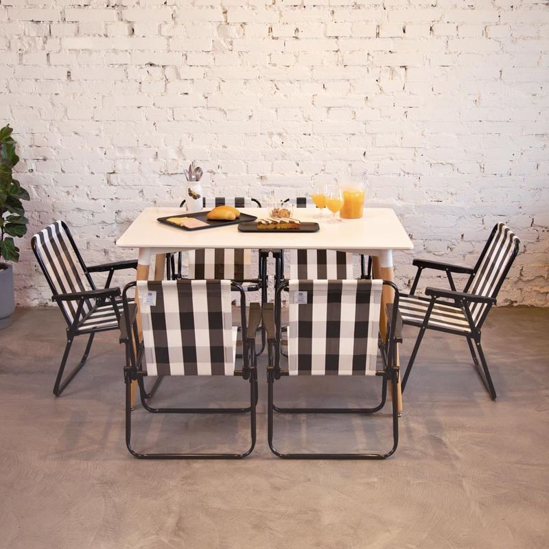 A nova Cadeira Alta Retrô possui design moderno e super nostálgico, que transforma qualquer ambiente. Dobrável e fácil de carregar, ela é super prática e confortável, perfeita para te acompanhar no camping, na pescaria ou no final de tarde com os amigos na varanda ou jardim de casa. Muito resistente, tem estrutura fabricada em aço carbono com acabamento em pintura epóxi à pó preta e peças plásticas em polipropileno, suportando até 110 Kg. Para guardá-la, basta dobrar e colocar em qualquer cantinho da sua casa. Sua tela é produzida em 100 % poliéster!