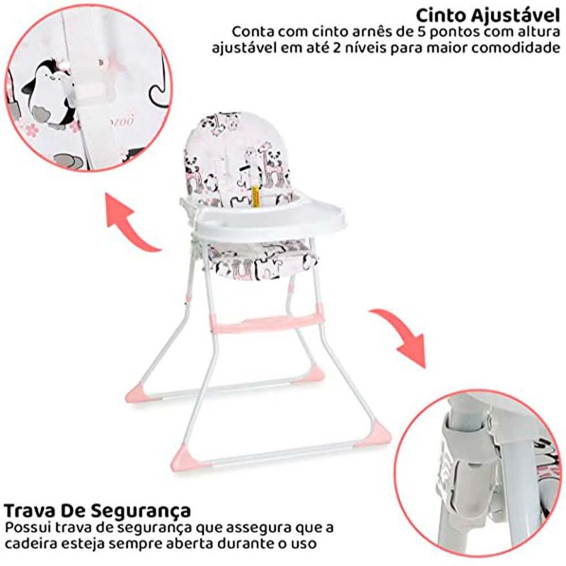 Cadeira de Alimentacao Alta - Nick - Zoo - 23 kg - Galzerano: A Cadeira Alta de Refeicao Nick Galzerano tem o tamanho ideal para bebes de ate 23Kg, tem encaixe perfeito e uma bandeja para apoio dos pratos e potinhos. A cadeira de refeicao vai estimular o bebe a se alimentar sozinho e tem a altura ideal para isso. Um zoologico inteiro para acompanhar seu bebe na hora mais deliciosa do dia, a hora da papinha! Produzido com materiais de primeira linha, lindas estampas e seguranca para seu bebe crescer forte e saudavel. Detalhes: • Assento e encosto acolchoado em plastico laminado, facilitando a limpeza. • Bandeja removivel que permite aproximacao a mesa de refeicao. • Cadeira desmontavel, tornando a embalagem mais compacta. • Bandeja e apoio de pes. • Bandeja com porta copos. • Cinto de seguranca com 2 regulagem de altura. • Cinto de seguranca de 5 pontos. • Trava de seguranca. • Estrutura em Aco. • Facil de desmontar. Informacoes: • Produto: Cadeira de Alimentacao Alta Zoo • Marca: Galzerano • Colecao: Nick • Tipo: Cadeirinha de alimentacao para bebes • Tamanho do Produto Fechado (C x A x L): 15 x 95 x 74 cm • Peso do Produto: 3.560 Kg • Peso Suportado: ate 23 Kg • Categoria: Hora do Papa • Subcategoria: Cadeira de Refeicao para Bebe • Conteudo: - 01 Cadeira de Alimentacao Alta - 01 Manual de Instrucoes • Recomendacao: para criancas a partir de 06 meses de idade Especificacoes: • Referencia: 5025ZOO • Codigo de Barras: 7908200102797 • Embalagem (C x A x L): 22 x 46 x 73 cm • Embalagem (Peso): 4,790 kg • Material / Composicao: 100% PVC • Registro: 002 366/2022 • Certificado: Orgaos Autorizados - OCP´S (Organismos de Certificacao de Produtos) Aviso: • As imagens sao meramente ilustrativas • Os pesos, tamanhos e medidas sao aproximados • As cores e estampas dos produtos podem ter variacoes • As informacoes sao de responsabilidade do fabricante ou fornecedor