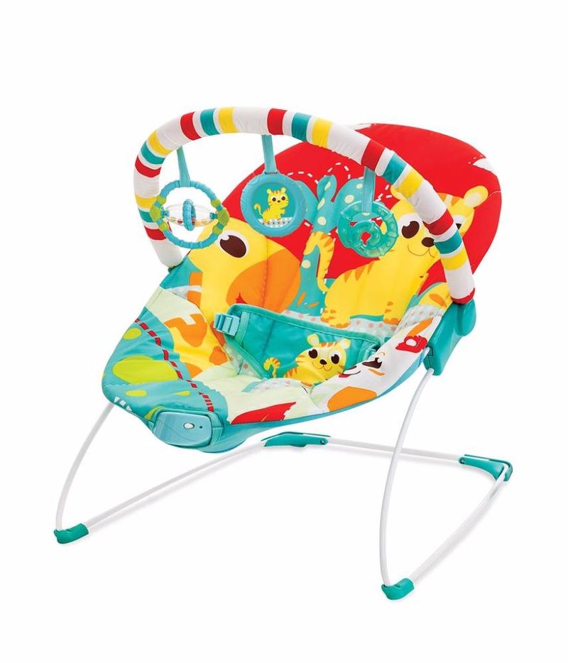Cadeira de Descanso Carnaval da Mastela é uma cadeira de balanço musical e vibratória para acalmar o bebê, vem com arco de fácil remoção com 3 brinquedos divertidos para distrair o bebê e ajudá-lo em seu desenvolvimento. O assento é desenvolvido para o bebê ser embalado e o tecido pode ser lavado à máquina. O cinto tem 3 pontos para maior segurança dos pequenos e os pés são antiderrapantes para dar maior firmeza.