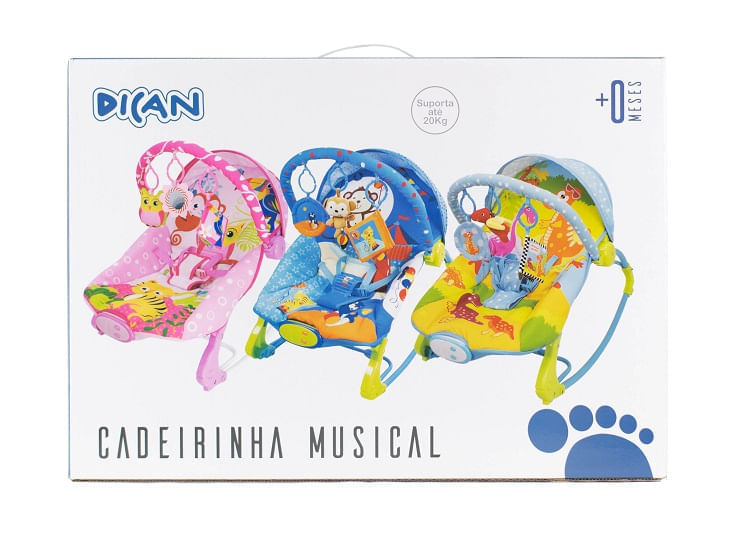 A Cadeira de descanso dino divertido toca diversas músicas com controle de volume, possui vibração com diferentes níveis para relaxar o seu bebê, reclina em