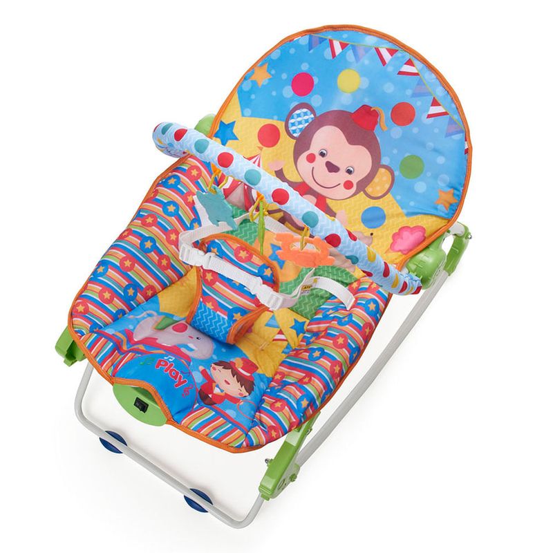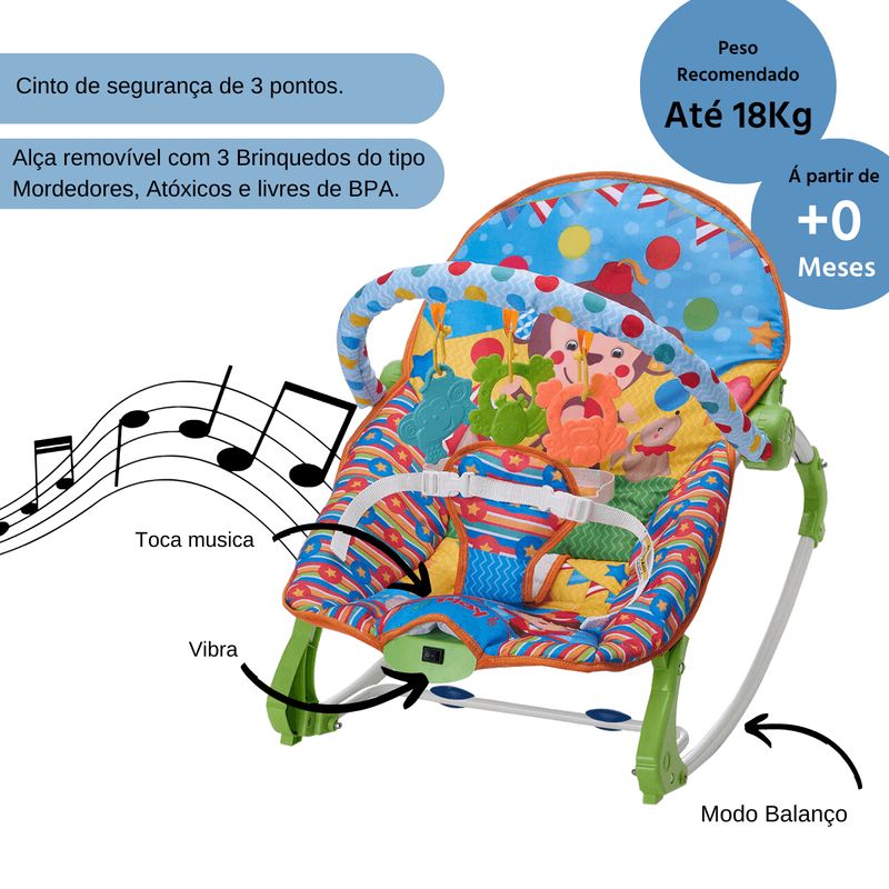 Cadeira de Descanso Musical e Vibratória Flex Até 18kgs Simon Replay Kids Cadeira de Descanso e Balanço Replay Kids até 18 kgs. Possui vibração suave e uma melodia que vai proporcionar momentos de diversão e relaxamento com carinho e conforto para o seu bebê. A cadeira de descanso ainda possui alça removível com 3 brinquedos coloridos e divertidos, para estimular o sentido dos bebês como tato, audição, visão e coordenação motora. Perfeito para embalar os sonhos de seu bebê, uma forma de manter a criança entretida por muito mais tempo. Brinquedos atóxicos, livre de BPA. Produto certificado com total segurança.