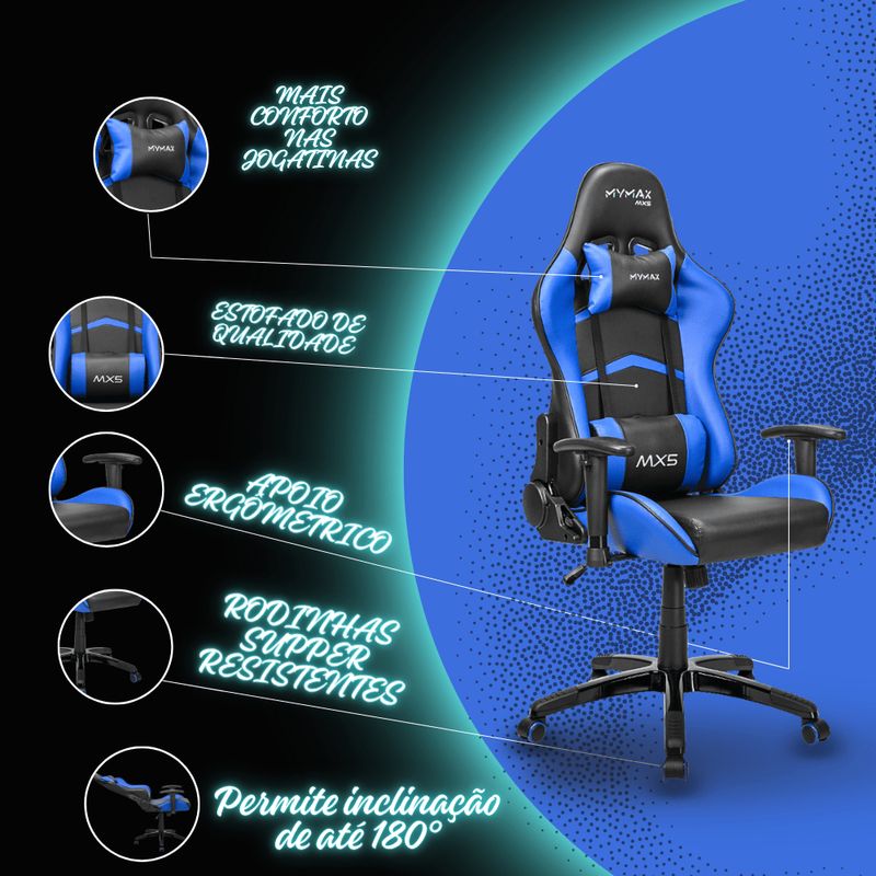 Referência: Cadeira Gamer Mymax MX5 Preto/Azul