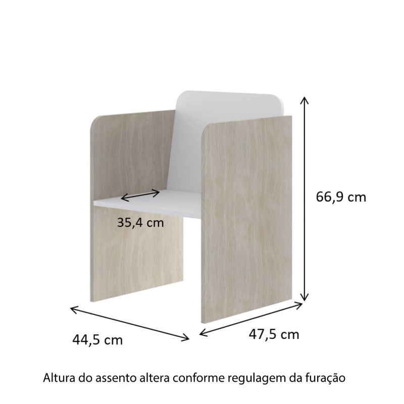 Cadeira Infantil com Regulagem de Altura - Branco/Natural