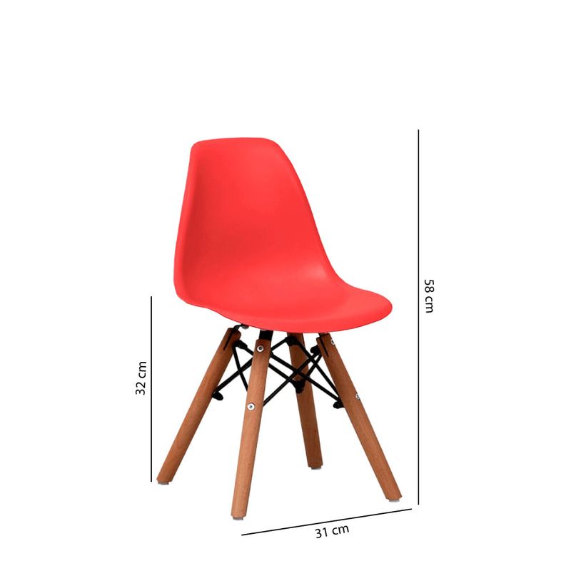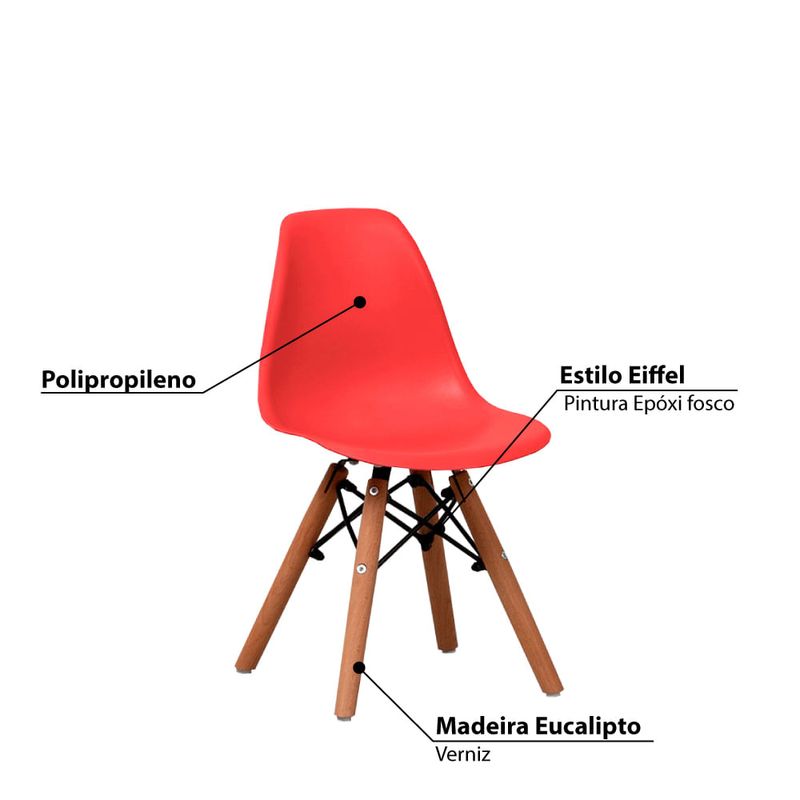 Cadeira Infantil Eiffel com Pés em Madeira - Vermelho