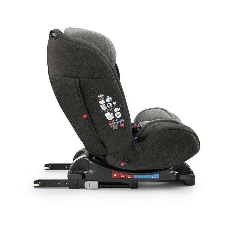 São 4 posições de recline super confortáveis, 14 posições de altura do apoio de cabeça e três alturas para ajuste do cinto de segurança.. A All Stages conta com sistema de retenção isofix com duas garras isofix na base e o top tether no topo. O isofix é reversível, sendo possível usá-lo em todos os grupos, do 0 ao III.