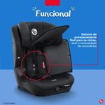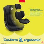 A segurança é reforçada pelo sistema interno de proteção contra impactos laterais, que absorve a energia de colisões para maior proteção da cabeça e tronco. O conforto é garantido por estofado premium, almofadas redutoras super acolchoadas e tecido macio, que proporcionam bem-estar em viagens curtas ou longas.