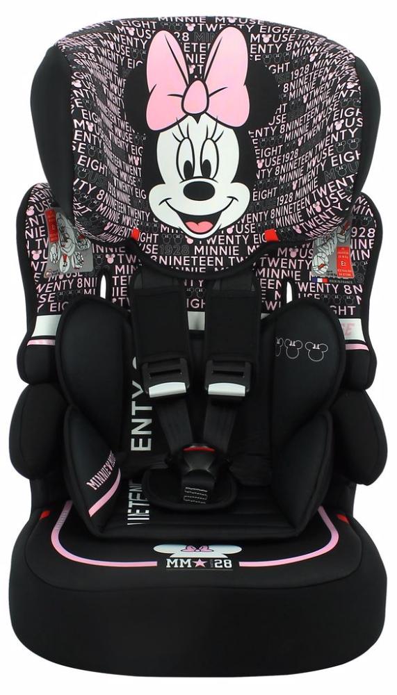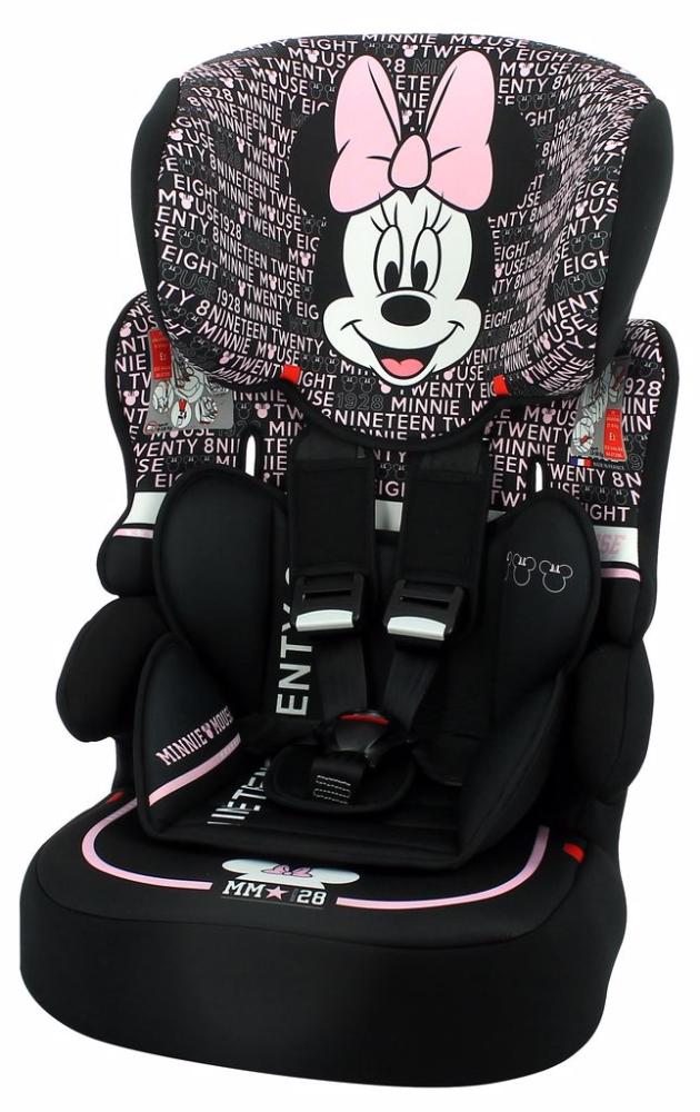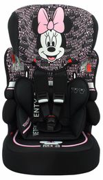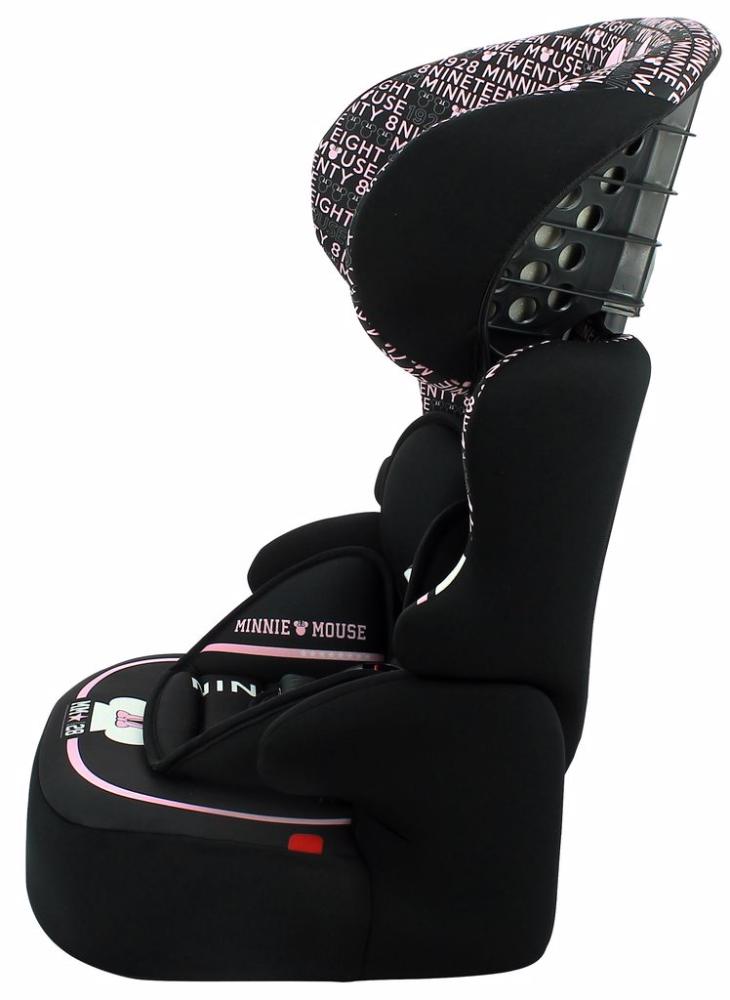 A Cadeirinha de Carro Kalle Minnie Mouse Typo da Team Tex é certificada para o Grupo 1/2/3 (de 9 kg a 36 kg) e oferece um encosto de cabeça ajustável que acompanhará o desenvolvimento de seu filho(a) mantendo-o(a) sempre bem protegido(a).