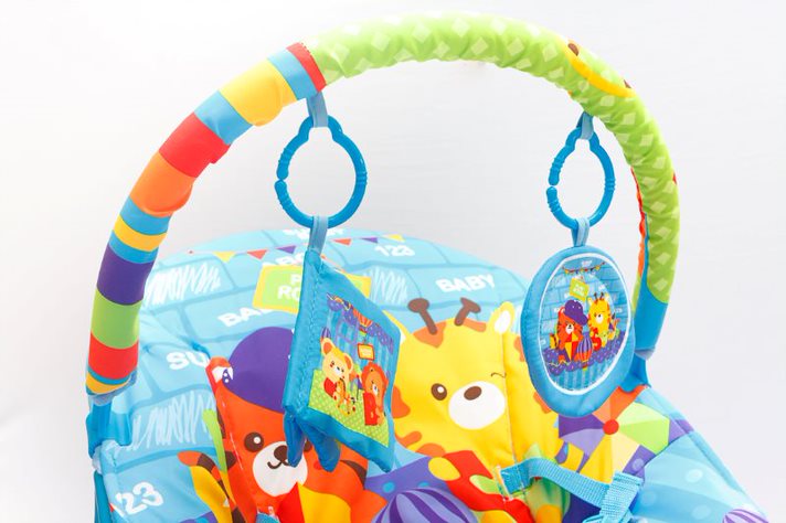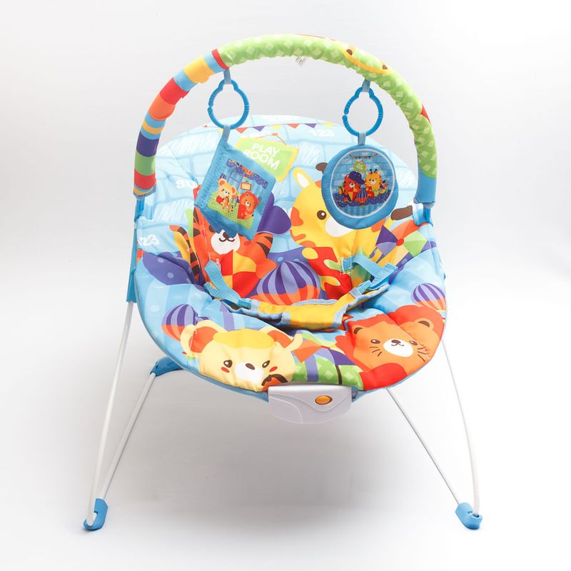 A Cadeirinha de Descanso Reis da Selva Musical fará com que seu pequeno fique mais próximo dos animais! Diversão e segurança não poderiam faltar, contém um cinto de segurança ajustável e conta com 2 lindos brinquedos suspensos multissensoriais. Além disso, as vibrações emitidas acalma e relaxa os pequenos, enquanto podem escutar até 10 diferentes melodias que foram desenvolvidadas para estimular os sentidos já em seus primeiros meses de vida. Também pensando também na praticidade para os papais, o tecido é facilmente lavável e seu arco removível. Seu novo melhor amigo o espera.