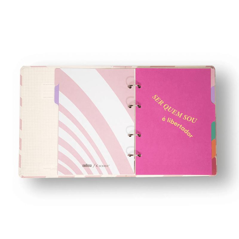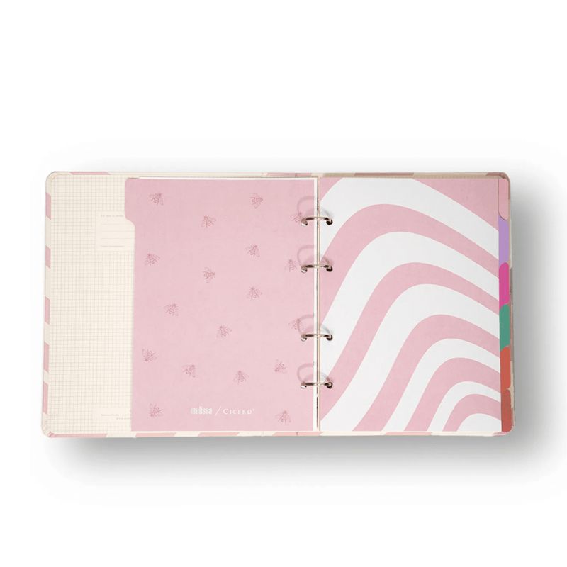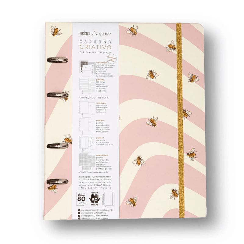Nosso Caderno Criativo Argolado Criativo Melissa é um fichário com 4 furos e um elástico de segurança, com estampas exclusivas criadas pela Cicero Papelaria para sua rotina ficar sempre cheia de estilo, super organizada e perfumada com cheirinho nostalgico de Melissa. Um produto completo e versátil para organizar ideias, estudos, clientes, receitas e o que mais você precisar.