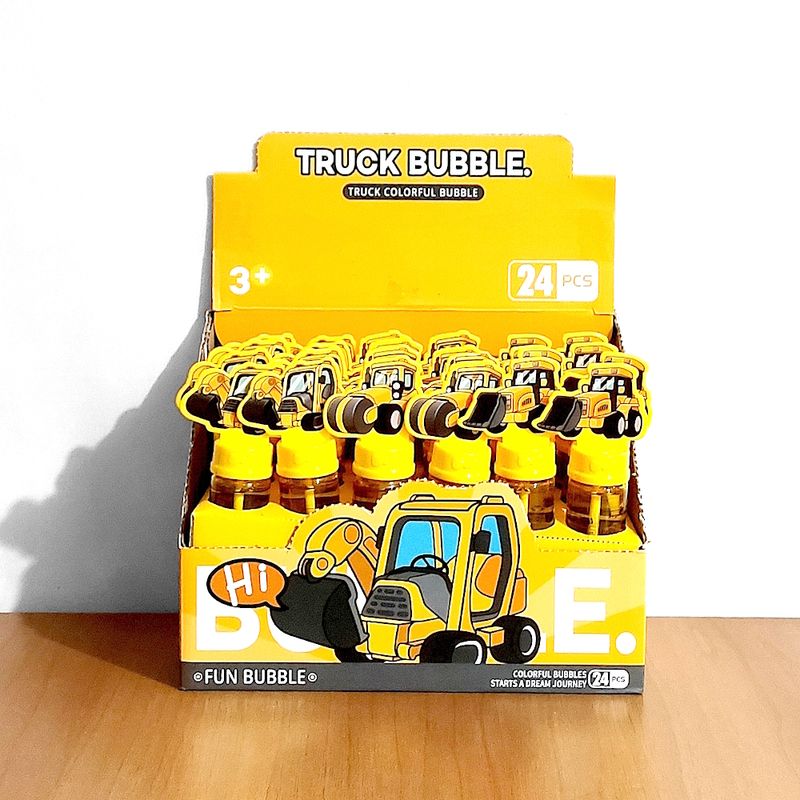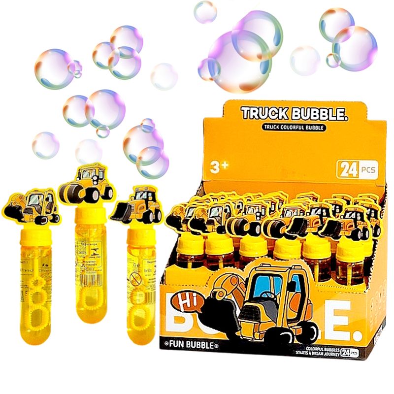 Caixa com 24 Tubos de Bolhas de Sabão de Tratores Construção Amarelos Festas e Lembrancinhas Sacolinha Surpresa Caixa Display Fechada