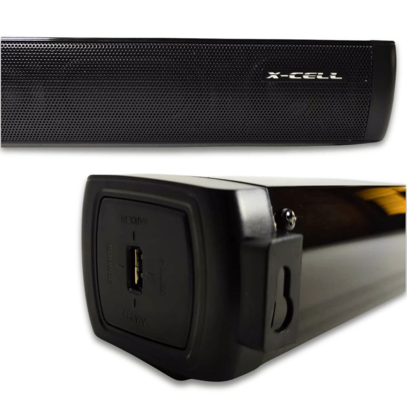 Caixa de som soundbar XC-SB-01 A soundbar XC-SB-01 oferece 180W de potência com som estéreo de alta qualidade. Apresenta um design moderno e sofisticado, ideal para complementar qualquer ambiente com estilo e desempenho. Indicada para aprimorar a experiência sonora ao ouvir músicas, assistir filmes, jogar, acompanhar podcasts e muito mais. Compatível com televisores, computadores, notebooks, smartphones e videogames que possuam conexão Bluetooth ou saída de áudio P2. Especificações Técnicas: Modelo: XC-SB-01