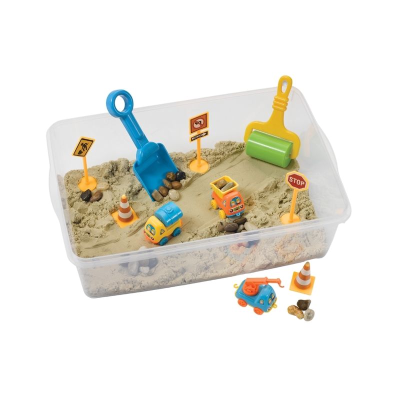 BRINQUEDO DE CONSTRUÇÃO PARA CRIANÇAS ACIMA DE 3 ANOS: Cavar, construir e aprender novas habilidades sensoriais - uma zona de construção de cada vez! Esta incrível caixa vem com areia sensorial fácil de moldar, brinquedos sensoriais e muito mais! Basta adicionar imaginação para horas de brincadeiras.