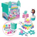 Componentes Inclusos: Caixa Sensorial Cakey Cat, 3 cores de argila, 1 cor de espuma modeladora, 4 pacotes de decoração, 2 moldes de cupcakes, 3 ferramentas, 3 pingentes de personagens e 1 folha de decorações impressas,