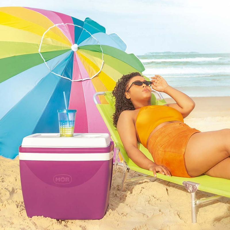 Para acompanhar seu dia na praia, camping ou até mesmo garantir as bebidas geladas e os lanchinhos em longas viagens, a Caixa Térmica 34 Litros Açaí da Mor é item indispensável! Ela possui parte interna e externa em polipropileno injetado, tampa em polietileno e isolamento térmico em poliestireno expandido, material 100% virgem e atóxico, o que garante qualidade e durabilidade. Suas dimensões internas permitem que sejam armazenadas cinquenta latinhas de 350ml ou sete unidades de garrafas pet de 2 litros. A tampa possui design que permite apoiar duas latinhas na parte superior e alça para facilitar o transporte. Aproveite e peça já a sua pelo melhor preço!
