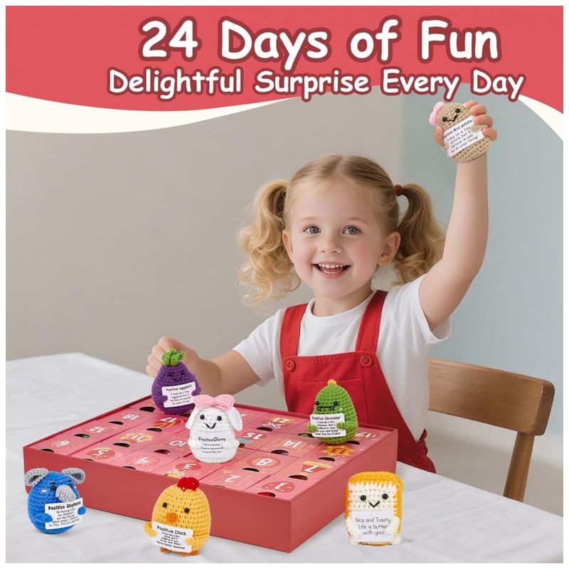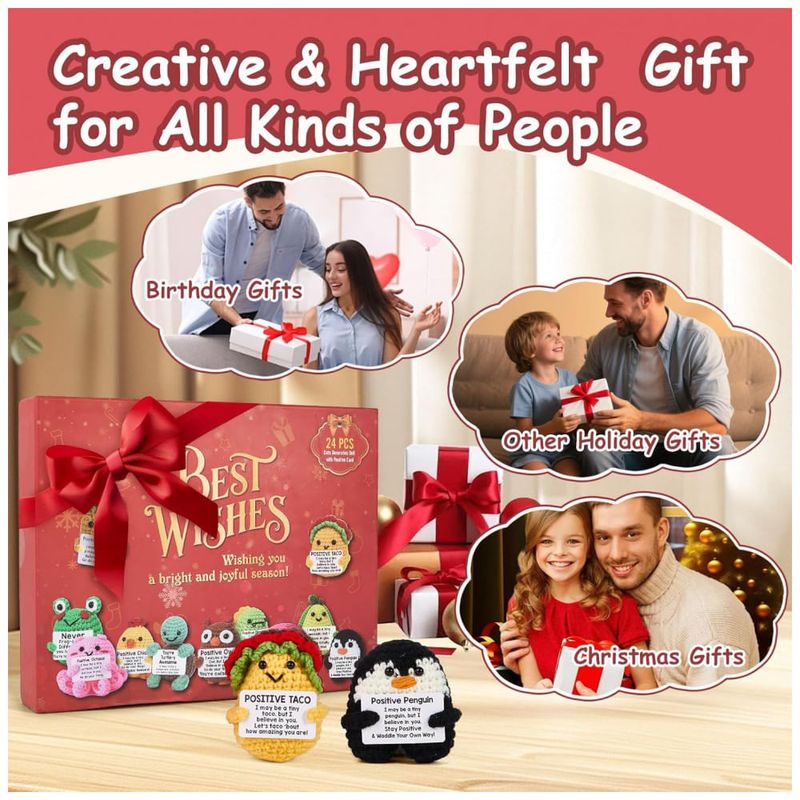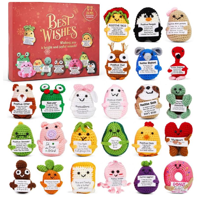 Diversão Infinita e Compartilhamento: Conforme o Natal se aproxima em dezembro, as crianças abrem uma nova boneca de crochê todos os dias, com surpresas diferentes a cada dia por 24 dias, permitindo que seus filhos compartilhem e façam a contagem regressiva com suas famílias durante o Advento até o Natal. Este calendário do Advento é projetado para proporcionar às crianças um Natal emocionante e inesquecível! Valor Inesperado: Este conjunto de calendário de contagem regressiva para o Natal possui 24 bonecas de crochê diferentes para crianças, incluindo elefantes, sapos, coelhos, galinhas, castores, flamingos, pinguins, tartarugas e outras formas de animais bonitos, além de berinjelas, abacates, cenouras, rosquinhas e outras formas de alimentos! Cada uma é feita à mão, fofa e bonita, com cores vibrantes, tudo a um preço incrível! Brinquedos de Crochê Feitos à Mão de Alta Qualidade: Estas bonecas de crochê são cuidadosamente feitas à mão com fios de alta qualidade, com uma aparência bonita, textura macia e confortável, com um toque delicado e excelente elasticidade, que mantém a forma mesmo sob pressão. Quando você precisa relaxar, você pode apertá-las, e elas podem fornecer apoio. Essas fofuras do tamanho da palma da mão podem ser facilmente colocadas no bolso ou mochila, adequadas para uso no trabalho ou na vida diária. Apoio Emocional Positivo: Cada brinquedo de crochê positivo vem com um cartão com palavras motivadoras, incentivando a cada dia. Perfeito para uso em dias difíceis ou quando você duvida de si mesmo, ele transmite uma mensagem de força e apoio, traz energia positiva e incentivo, e alegra o seu humor. Ele foi projetado para fornecer apoio emocional e mental, sendo ideal para lidar com momentos difíceis. Aplicação Ampliada e Linda Decoração: Estes crochês de apoio emocional são versáteis e podem ser colocados em mesas, prateleiras, mesas de cabeceira e carros. Seja em casa, no dormitório, no escritório ou em movimento, eles podem se tornar companheiros motivacionais e encantadoras decorações, adicionando calor e personalidade a qualquer espaço, criando uma atmosfera feliz e positiva. Presente Perfeito: Estes animais de crochê positivos são adequados para meninos e meninas acima de 3 anos, e homens e mulheres adultos. Este é um presente perfeito para o Natal, Ano Novo e aniversários. Também pode ser usado como presente de Dia dos Namorados, presente de Ação de Graças, presente de festa, presente de formatura, presente de casamento, presente de chá de casa nova, presente de Dia dos Pais, presente de Dia das Mães, etc., para surpreender seus entes queridos.