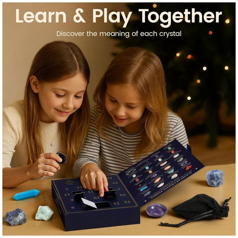 Celebre a temporada de festas com um conjunto de cristais de 24 peças em um calendário do advento de 24 dias, contendo 7 pedras brutas, 7 cristais lapidados, 8 torres de cristal, além de um colar de ametista, pulseira de aventurina, estojo de armazenamento, pincel de limpeza e saco de rede. Um presente de Natal perfeito para mulheres, homens, adolescentes e crianças. Inclui ametista, quartzo rosa, aventurina, obsidiana, fluorita e mais. Estas pedras de cura e chakras apoiam o bem-estar espiritual, a atenção plena, o alívio do estresse e o equilíbrio energético, tornando-se um presente significativo para colecionadores e amantes de cristais. Acompanha um colar de ametista, pulseira de aventurina, saco de armazenamento, pincel de limpeza e bolsa de rede. Ao contrário dos conjuntos de cristal comuns, esta caixa de presente do calendário do advento combina beleza e praticidade para festas e aniversários. Perfeito como contagem regressiva para o Natal, presente de aniversário, prêmio de sala de aula, brinde de Páscoa ou lembrancinha de festa. Ideal para meninas, meninos, mulheres, homens, adolescentes, colecionadores e buscadores espirituais. Abra um cristal por dia durante 24 dias de alegria e descoberta. Ótimo para unir a família, aprendizado das crianças, prática de meditação e momentos compartilháveis de desembrulhar presentes nas festas, criando memórias duradouras e tesouros colecionáveis.