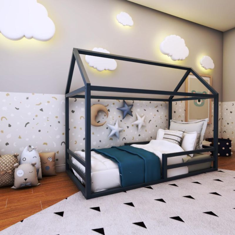 A cama Infantil Casinha foi pensada para atender você que busca o melhor custo-benefício. Produzida em madeira pinus de reflorestamento na cor Azul Escrita Antiga. Possui Proteção Lateral. Trazendo praticidade para você e conforto para o seu filho, ao mesmo tempo que é bonita e divertida para alegrar o quarto!