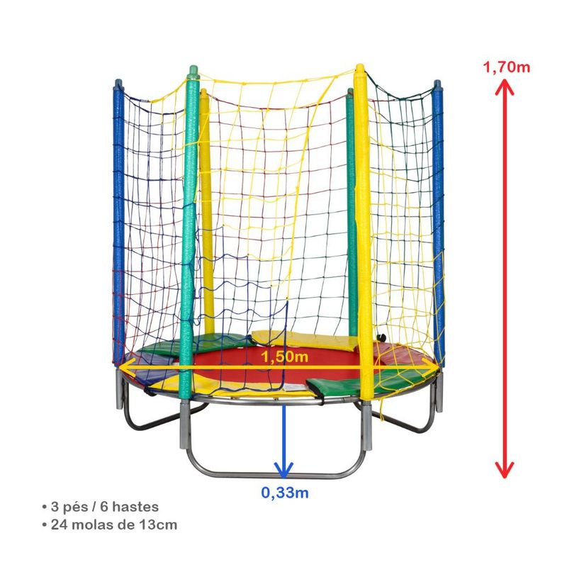 Cama Elástica 1,50m Nacional c/ Lona de Salto Azul, Vermelha, Verde ou Preta sem Emendas - PapiBrink Também conhecido como Pula-Pula ou Trampolim, a Cama Elastica é um produto consagrado e indispensável em qualquer festa infantil. A Cama Elástica Nacional COR LISA SEM EMENDA 1,50 metros da PapiBrink está disponível em quatro opções de cores da Lona de Salto (verde, azul, vermelho ou preto), que pode ser escolhida pelo cliente no ato da compra! ( *verificar variações no anúncio* ). Um brinquedo versátil, a Cama Elástica Cor Lisa Sem Emenda 1,5m PapiBrink pode ser utilizada tanto em ambientes privados (casa, condomínio, chácara, clube, hotel), como áreas públicas (creches, escolas, praças, espaços de eventos, de laser e centros esportivos). Outro diferencial do Trampolim Nacional PapiBrink é a lona de salto sem emendas em cores lisas verde, azul, vermelha ou preta, em Nylon com proteção UV, o que garante uma maior resistência contra os raios solares e evita o desgaste precoce do tecido da Cama de Salto Elástica. Por ser uma cama elástica pequena, o Pula Pula de 1,50m com Lona de Nylon Cores Lisas é muito recomendada para crianças de até 10 anos de idade. Para crianças maiores, adolescentes e adultos, temos outros tamanhos maiores. O Trampolim 1,50m com Lona sem Emenda COR LISA da PapiBrink possui 3 (três) pés em formato de W, que garantem estabilidade ao produto. Um de seus diferenciais é sua estrutura feita em aço galvanizado a fogo (por dentro e por fora), que não enferruja com facilidade e possui alta resistência. Uma Cama Elástica Compacta, com Rede de Proteção Colorida (feita em malha 11) e Protetor de Molas Colorido, feito com espuma de alta densidade para evitar que a criança afunde o pé enquanto está brincando e pulando, além de contar com um revestimento em PVC impermeável. Com um conjunto de Ponteiras Coloridas Arredondadas em plástico resistente, além dos Isotubos Blindados Coloridos com proteção UV, garantimos a qualidade dos acessórios e a segurança das crianças ao brincar e pular. A Cama Elástica Pequena de 1,50 metros PapiBrink Nacional vem com 24 Molas Galvanizadas, ao invés dos frágeis elásticos utilizados em alguns modelos importados de camas elásticas pequenas, aumentando a durabilidade, a segurança e a impulsão. A praticidade aqui é um dos destaques, sendo a montagem simples e rápida. As camas elásticas da marca PapiBrink são todas de encaixe manual, não precisando de parafusos e ferramentas especiais. Vantagens ao Comprar uma Cama Elastica Profissional da Marca Brasileira PapiBrink: - Acesso Fácil e Rápido à Peças de Reposição: Camas Elásticas importadas normalmente têm dimensões um pouco diferentes das nacionais, dificultando a substituição da lona, das molas, proteções e demais acessórios de segurança do Pula-Pula. - É bom para os brasileiros e nossas Indústrias: Incentivar o consumo de produtos nacionais não se limita apenas em ter orgulho das marcas brasileiras, mas também influencia no desenvolvimento da nossa indústria. - O Ciclo Virtuoso da Qualidade: A valorização das marcas nacionais geram aumento de variedade e diversidade, pois incentiva o brasileiro a empreender. Isso é bom para o consumidor e auxilia as empresas brasileiras na melhoria das mercadorias nacionais. - Melhor custo-benefício: O nosso país conta com praticamente todos os recursos que muitos outros precisam importar. Ou seja, conseguimos ter qualidade com preço competitivo, sem a necessidade de toda cadeia logística necessária para um produto importado chegar até a sua casa ou empresa. - Aquecimento da economia: Comprar produtos nacionais é dar uma força especial à economia do país. Afinal, essas produções favorecem produtores locais, utilizam transportes daqui, são vendidos por estabelecimentos brasileiros e todos os impostos que pagamos ficam para o nosso país. - Um Brasil para brasileiros: Além dos pontos e das vantagens acima descritos, há outros aspectos importantes, desde questões ambientais e sociais, até o orgulho próprio em defender o que é nosso!
