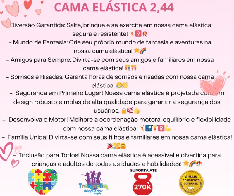 – Sistema de montagem do trampolim por encaixe (fácil de montar)