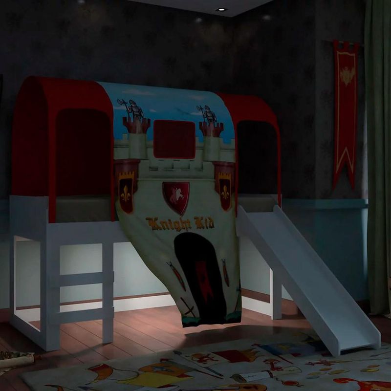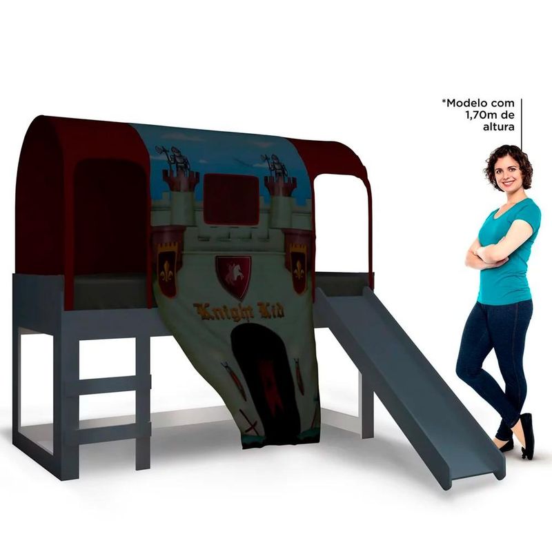 - Dossel em tecido 100% Poliéster. - Escorregador com bordas curvas. - Lateral da cama com grade de proteção.