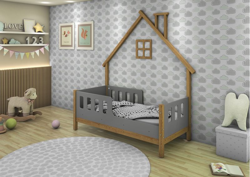 A Cama com Moldura de Parede Casinha é perfeita para deixar o quarto do seu filho mais alegre, dinâmico e divertido.