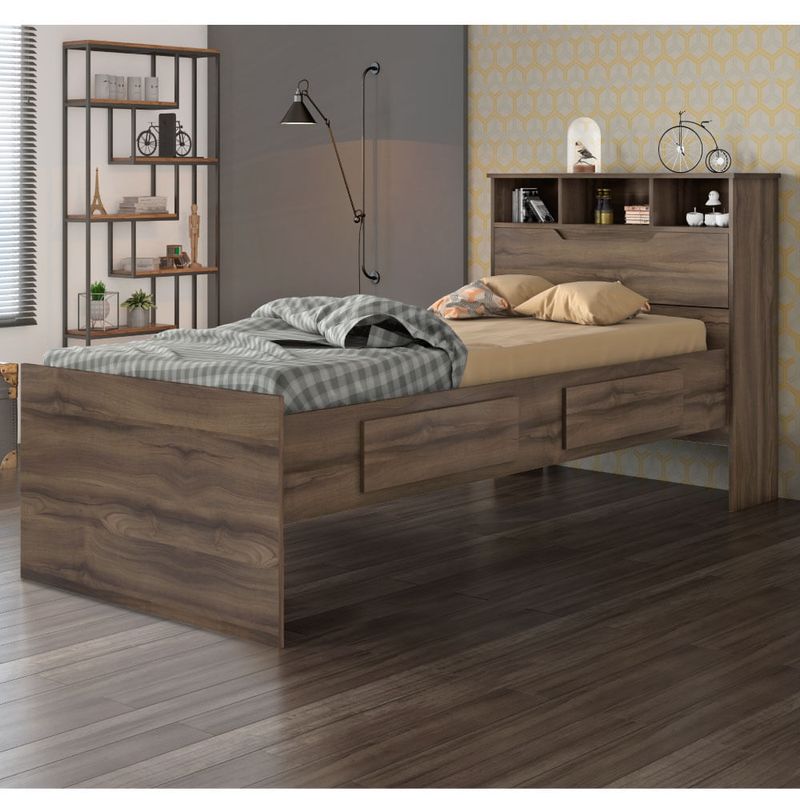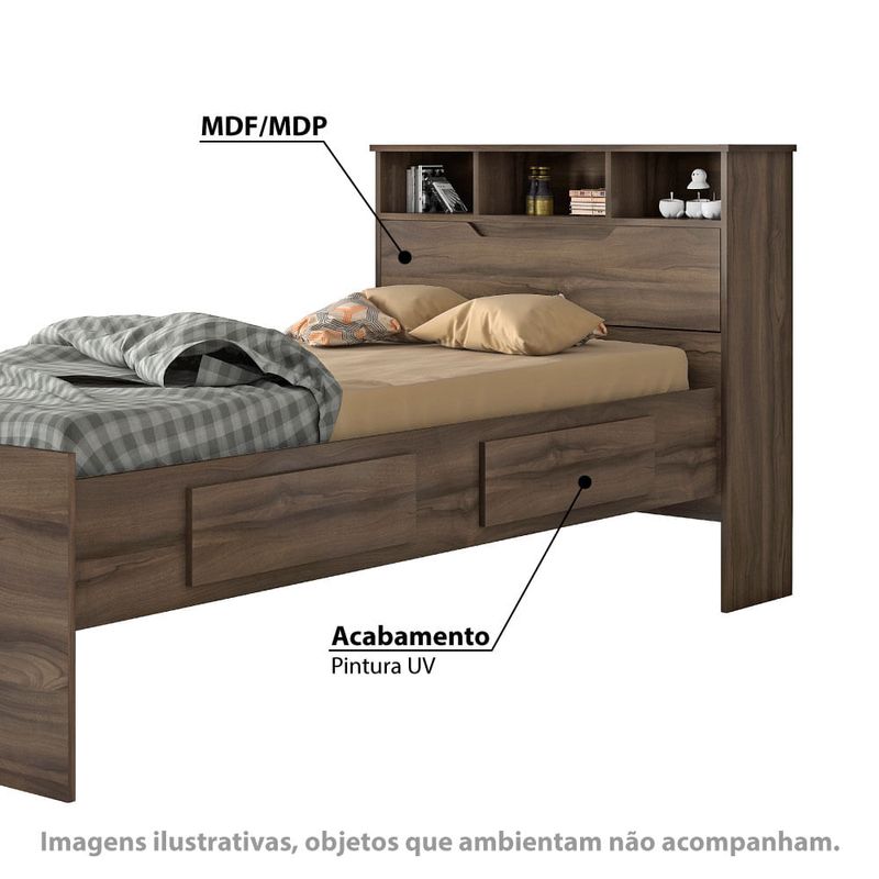 Cama Íris com Baú 2 Gavetas e Nichos - Café