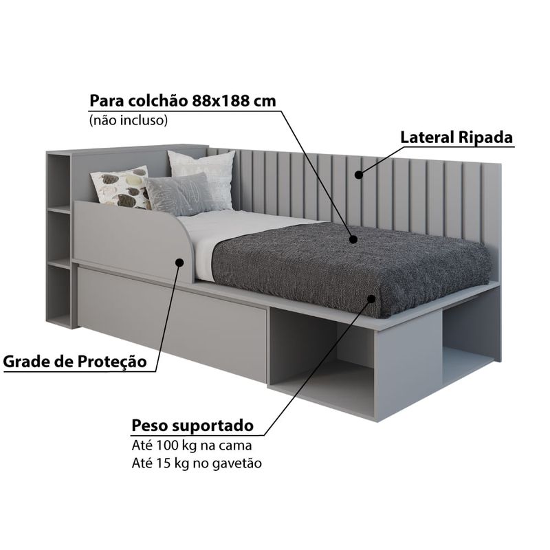 - Para colchões solteiro 188 x 88 cm (não incluso)