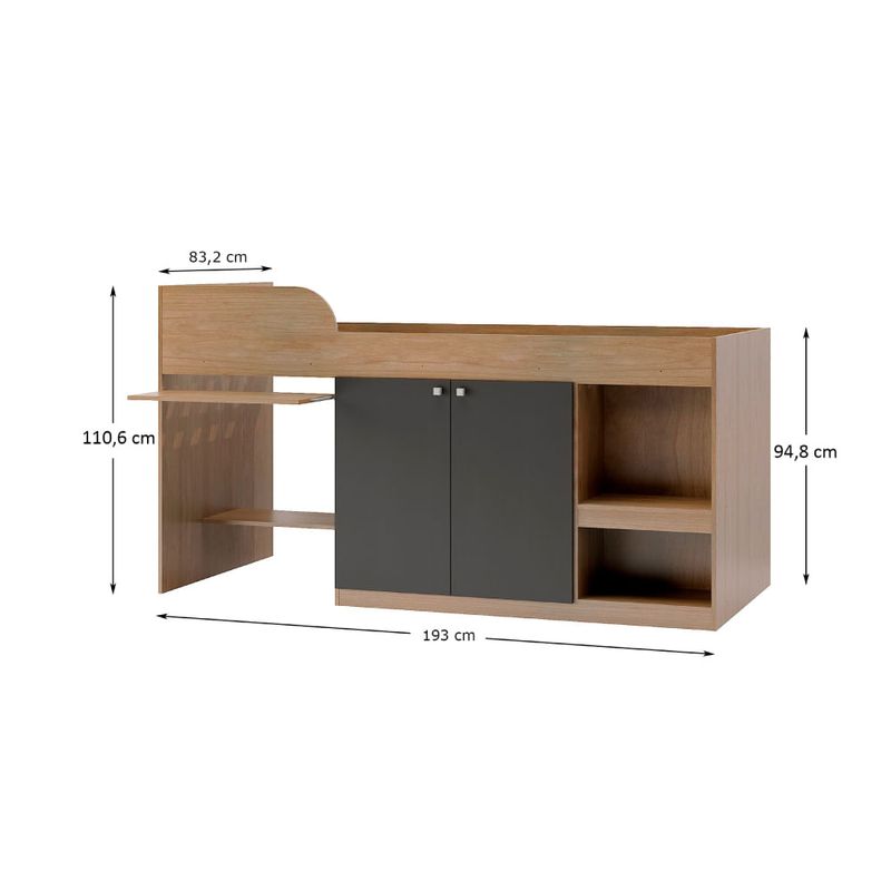Cama Multifuncional com Escrivaninha e 2 Portas - Castanho/Preto