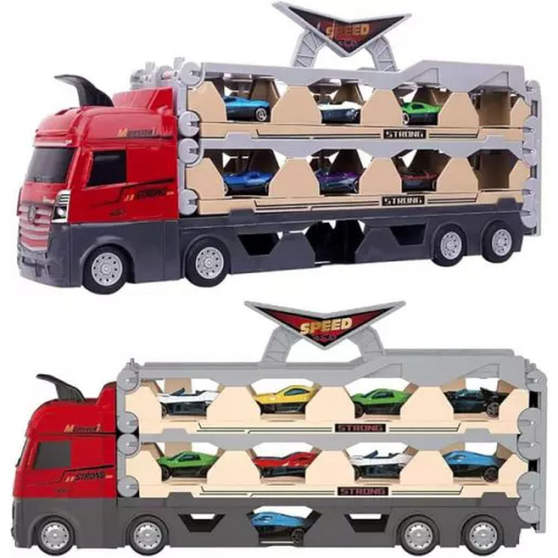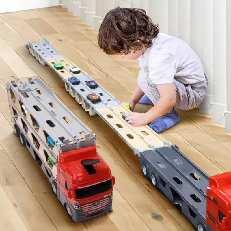 Pista de Corrida Expansiva: Quando aberto, este caminhão se transforma em uma pista de corrida emocionante de mais de 2 metros de comprimento, permitindo corridas cheias de ação.6 Carrinhos Esportivos Inclusos: O conjunto inclui uma variedade de carrinhos esportivos coloridos, cada um com seu próprio estilo e personalidade. ESPECIFICAÇÕES DO PRODUTO: