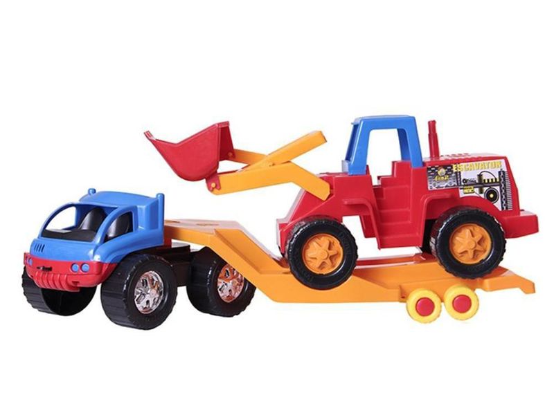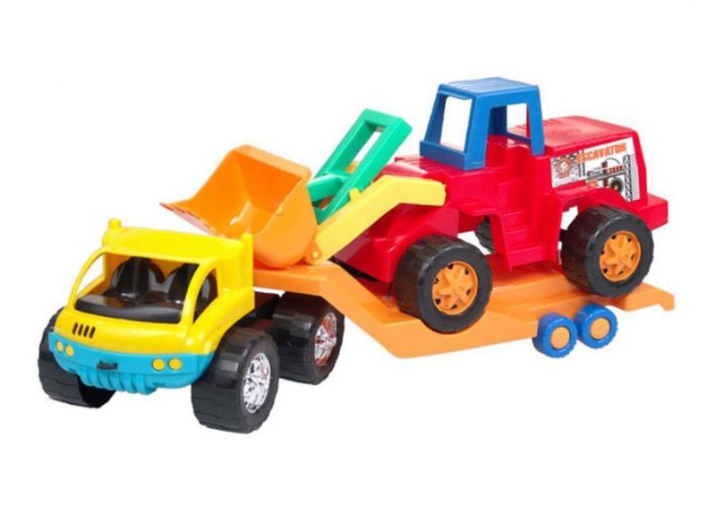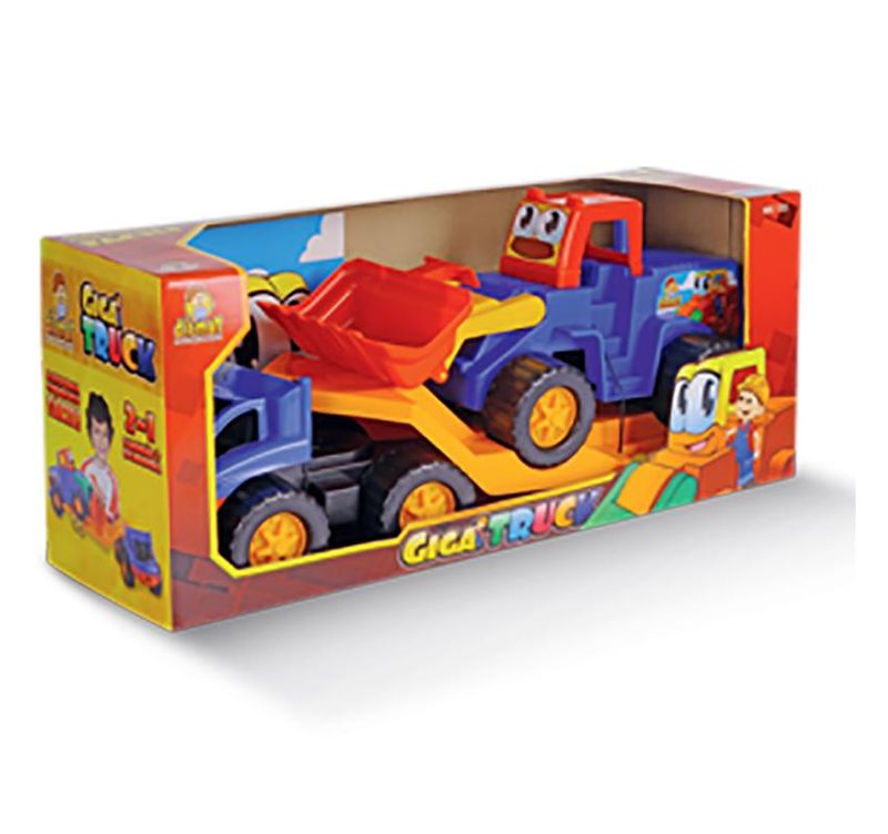 Fabricado em plastico resistente e com design arrojado, este caminhao tem rodas que encaram qualquer tipo de terreno. Ainda acompanha uma plataforma e uma pequena escavadeira para a brincadeira ficar mais real. + 1 ano e 6 meses. Cores sortidas!