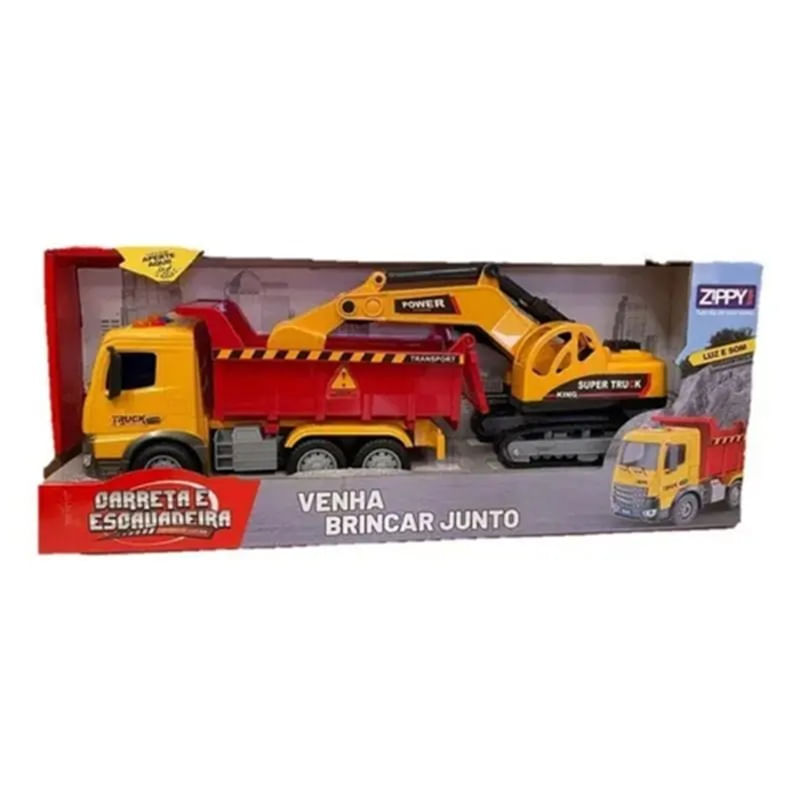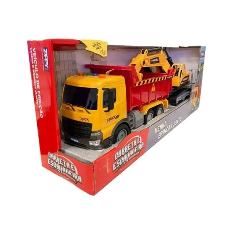 Aumente a diversão com o Caminhão com Luz e Som e Escavadeira da Zippy Toys Ideal para pequenas aventuras, este conjunto de brinquedos promete entreter as crianças com muitos recursos. O caminhão vem equipado com luzes coloridas, efeitos sonoros realistas e movido a fricção, proporcionando uma experiência imersiva de construção. A escavadeira, com seu design detalhado e articulação funcional, permite que as crianças simulem atividades de escavação e movimentação de terra, estimulando a criatividade e a coordenação motora. Este incrível conjunto inclui uma carreta com mecanismo de fricção e uma escavadeira articulada, ideal para aventuras cheias de ação. A carreta emite 3 sons realistas: buzina, marcha à ré, freio e partida, além de luzes que tornam a brincadeira ainda mais envolvente. Tanto a carreta quanto a escavadeira possuem articulações que simulam os movimentos reais, estimulando a imaginação e a criatividade das crianças. Perfeito para pequenos fãs de veículos e construção! Feito com materiais duráveis e seguro para os pequenos, esse brinquedo é perfeito para os pequenos construtores em formação. Conteúdo: 01 Carreta