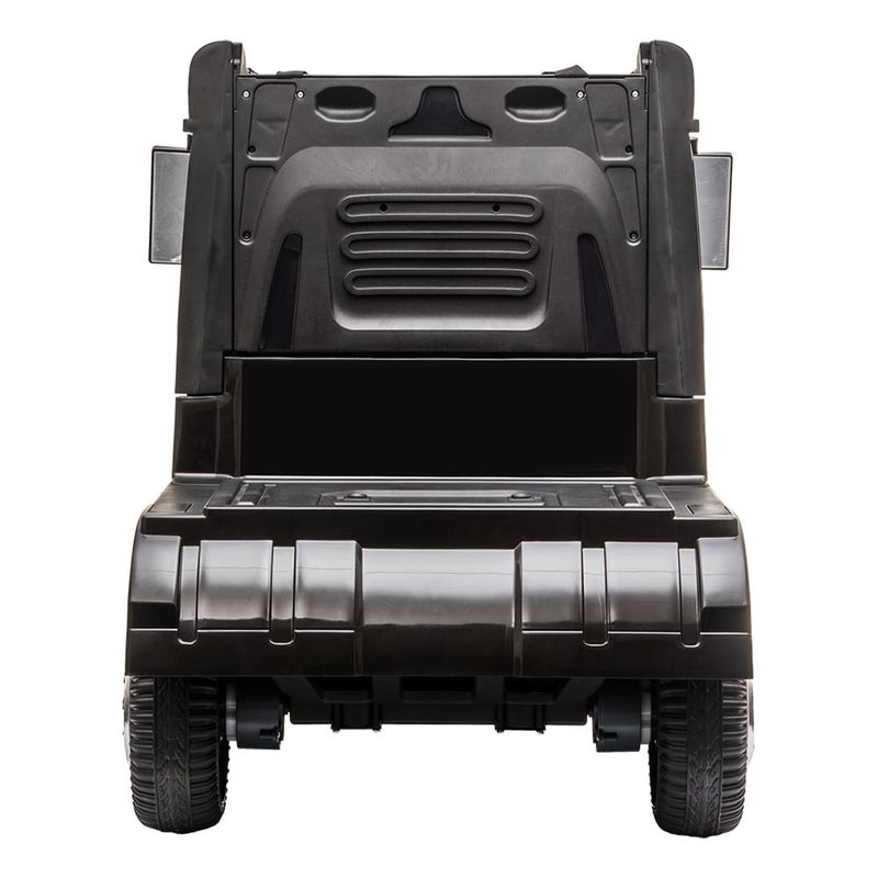 · Botões: liga/ desliga, buzina, música, volume, seleção para escolha de uso pelo controle e troca de velocidade 3 - 6 km/h (funciona com 2 pilhas AAA não incluídas)
